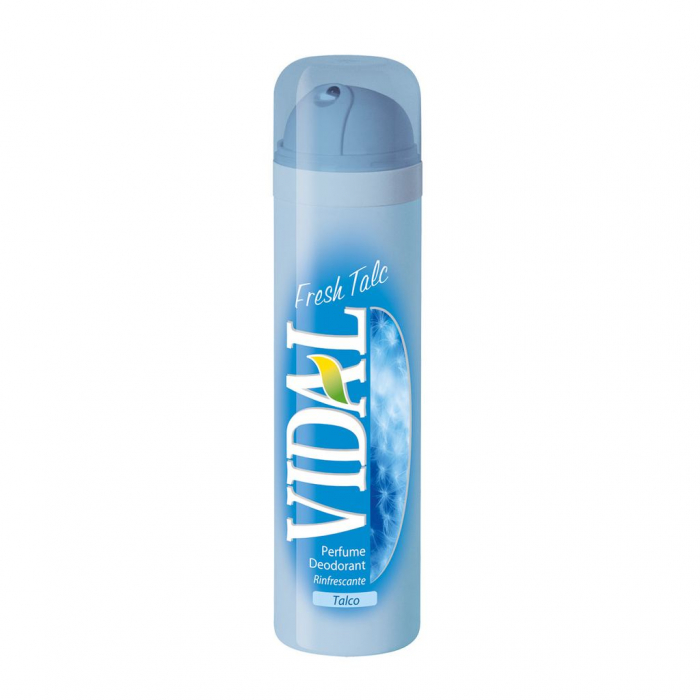 Deodorantul Vidal cu talc are ingredient active dovedite antipespirante. Regulează cantitate de transpirație și elimină eficient mirosurile neplăcute, și produce o stare îndeungată de prospețime.
