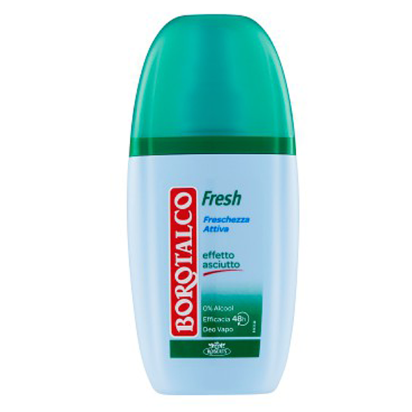 Borotalco Fresh vă garantează o piele uscată, parfumată și protejată, cu eficiența Microtalco care absoarbe și reglează transpirația mult timp. Nu conține alcool și este testat dermatologic.