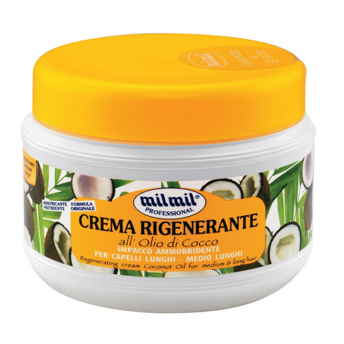 Crema naturală pentru păr lung, eficientă în tratarea problemelor structurii părului şi a scalpului uscat. Nu este un remediu mai bun pentru păr decît crema MIL MIL cu ulei de cocos pentru a redă vigoarea şi sănătatea părului fragil şi pentru a proteja părul de efectul deshidratant al soarelui sau clorului din apă. Uleiul de cocos este un ingredient de-a dreptul miraculos. Dar nu e de mirare de ce: uleiul de cocos are abilitatea de a penetra firul de păr mai bine decât orice alt ulei, hrănindu-l cu carbohidraţi, minerale, antioxidanţi şi acizi graşi buni (acid oleic, acid lauric, acid linoleic), polifenoli, vitamina E, vitamina K şi fier. Dacă ai părul uscat sau gras, te confrunţi cu probleme precum căderea părului sau mătreaţă, crema este nelipsită din tratamentele naturiste. Deoarece ea acţionează că un balsam care hidratează scalpul şi părul, îndepărtează mătreaţă şi ajută la creşterea rapidă a părului prin stimularea circulaţiei sanguine. Se recomandă pentru următoarele tipuri de păr: păr lung, aspru, păr subţire, vîrfuri despicate, păr deteriorat fără strălucire.