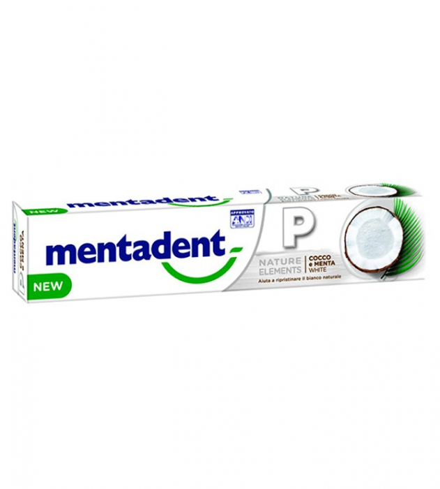 Pastă de dinți cu extract natural de cocos și mentă MENTADENT P NATURE ELEMENTS 75 ml. Nu conține triclosan și parabeni. Produs aprobat de Asociația Națională a Dentiștilor Italieni și de FDI. Oferă protecție completă cavității bucale: previne apariția cariilor, protejează gingiile, previne apariția plăcii bacteriene, întărește smalțul, redă culoarea albă dinților, împrospătează respirația, previne formarea tartrului, combate bacteriile. Grație formula sa cu note de mentă, îmbină extractul natural de cocos cu zincul mineral și are o acțiune antibacteriană. Instrucțiuni de utilizare pentru copiii mai mici de 6 ani: folosiți o cantitate mică de produs sub supravegherea unui adult pentru a reduce la minim riscul de înghițire. În cazul în care sunt administrate și alte produse pe bază de fluorură, consultați dentistul sau medicul dvs. Conține Fluorură de Sodiu (1450 ppm F). Ingrediente: vezi „Ingredients”. A se consuma în termen de 12 luni de la deschidere. PRODUS ÎN UK.