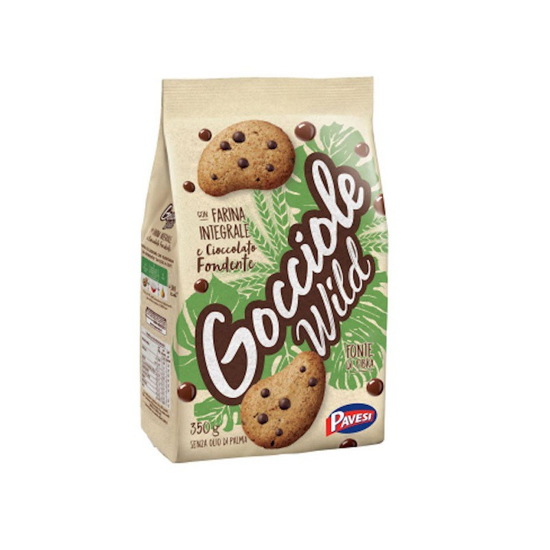 Biscuiți fragezi cu făină integrală și ciocolată amăruie PAVESI GOCCIOLE WILD.
