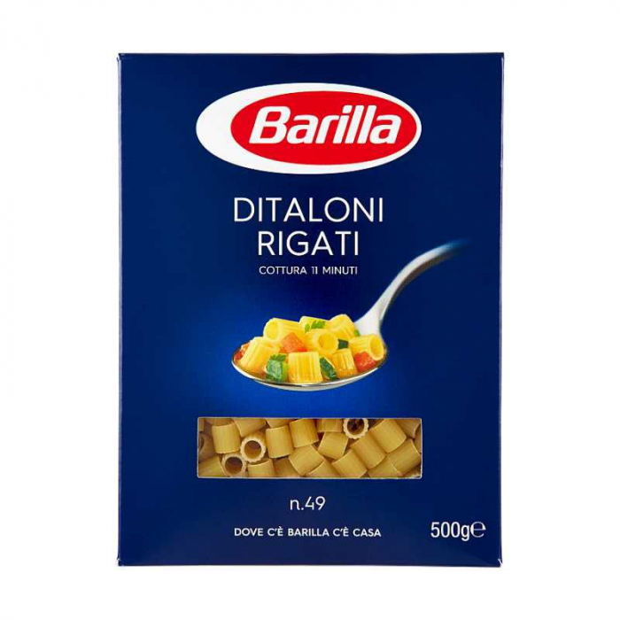 Paste din făină de grâu dur DITALONI N. 42 BARILLA. Greutate netă: 500 g, circa 10 porții.