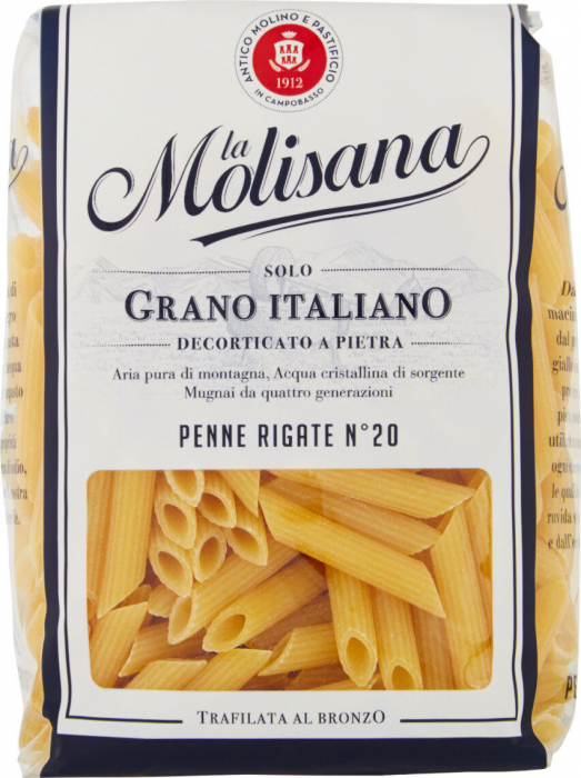 Obținut din grâu cultivat în Italia și în alte țări din și din afara UE. țara de măcinare: Italia. Poate conține urme de soia.