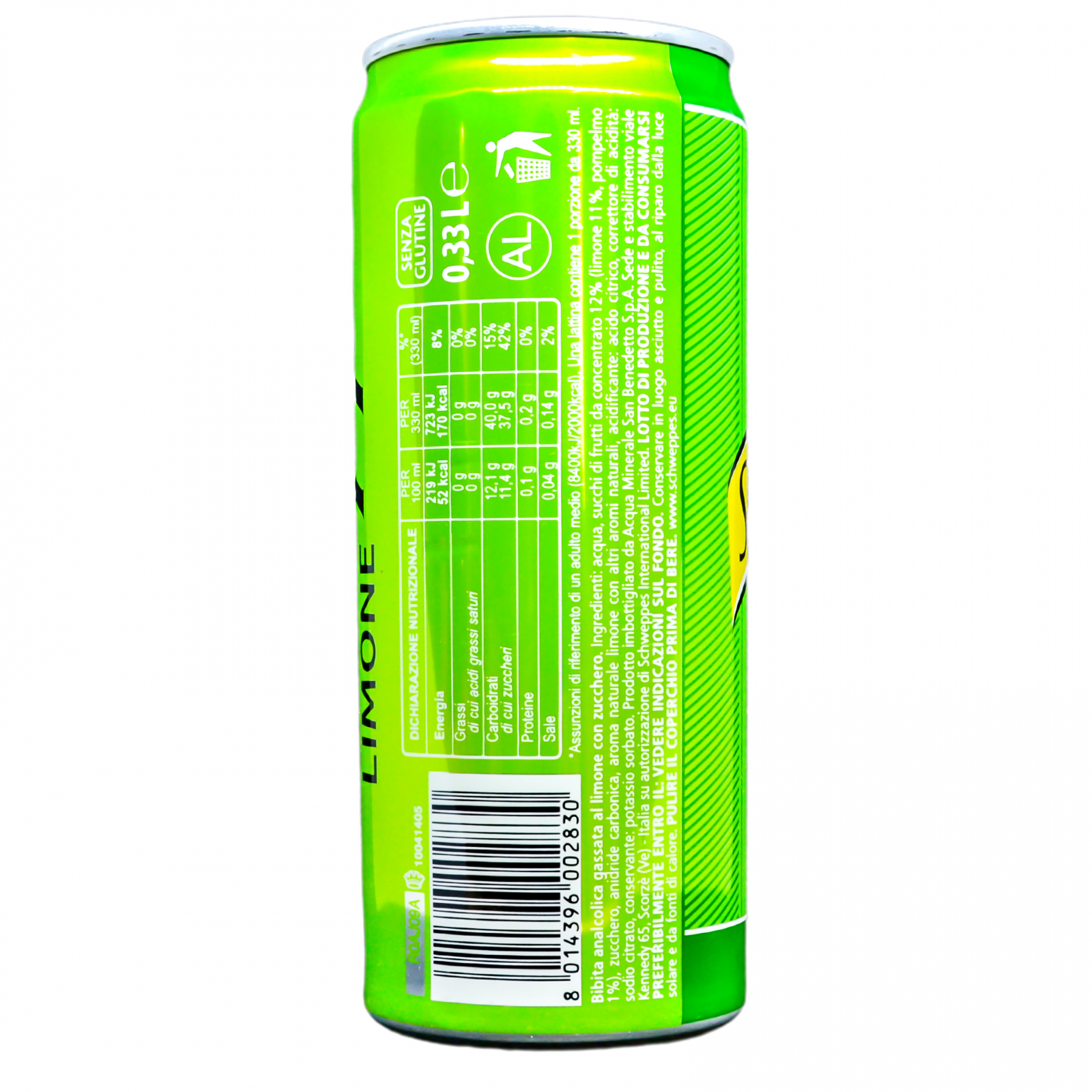 Ingrediente: apă, sucuri concentrate de fructe 12% (lămâie 11%, grapefruit 1%), zahăr, anhidridă carbonică, aromă naturală de lămâie, acidifiant: acid citric, corector de aciditate: citrat de sodiu, conservant: sorbat de potasiu. Valori nutriționale pentru 100 g de produs: Valoare energetică: 219 kJ/52 Kcal, Grăsimi: 0 g (din care acizi saturați 0 g), Carbohidrați: 12,1 g (din care zaharuri 11,4 g), Proteine: 0,1 g, Sare: 0,04 g.