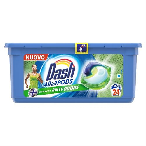 Detergent capsule pentru rufe cu acțiune anti-mirosuri neplăcute DASH PODS ALL IN 1 PODS IGIENIZZANTE 602,4 g.
