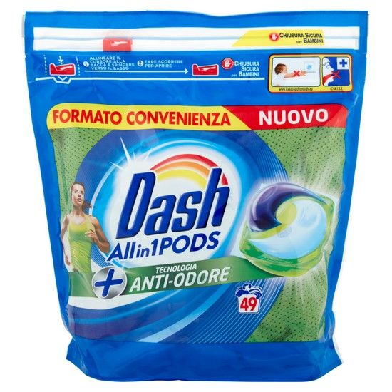 Detergent capsule pentru rufe cu acțiune anti-mirosuri neplăcute DASH PODS ALL IN 1 PODS IGIENIZZANTE 1229,9 g.