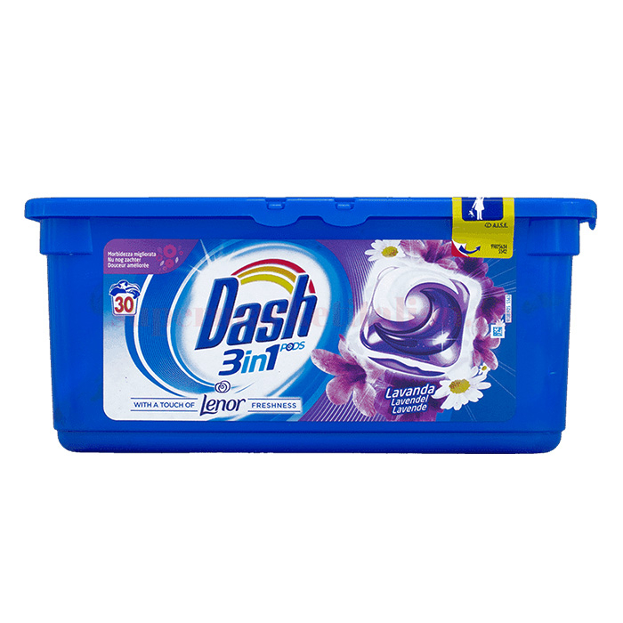 Acest detergent Dash 3 în 1 Lavandă 30 capsule este format din pernuțe lichide care revoluționează modul de spălare a rufelor. Asigură o dozare simplă și eficientă. Lavanda din conținutul său are un miros specific, floral, pătrunzător, plăcut, cu nuanță proaspătă de mentă și lămâie. Are o puternică prospețime Lenor. În principal se folosește o singură capsulă pentru o spălare. Dacă petele persistă și se regăsesc pe suprafețe întinse,, se pot folosi concomitent și două capsule. Este de preferat evitarea contactului cu ochii și cu pielea, deoarece provoacă grave iritații oculare și apariția unor pete roșiatice.