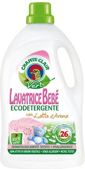 Recomandat pentru spălare automată. Conține 100% substanțe active de origine vegetală complet biodegradabile, din surse regenerabile. Gama Chante Clair Vert a obținut de la Certiquality certificatul „100% Vert” care garantează calitatea produselor și veridicitatea caracteristicilor ecologice descrise pe etichetă și fabricarea prin cicluri de producție care respectă mediul. Substanțele tensioactive din produs sunt rapid și complet biodegradabile (conform Regulamentului CE 648/2004). Testat pentru nichel, cobalt și crom. Număr de doze standard: 24. 1 doză (capac) = 75 ml.