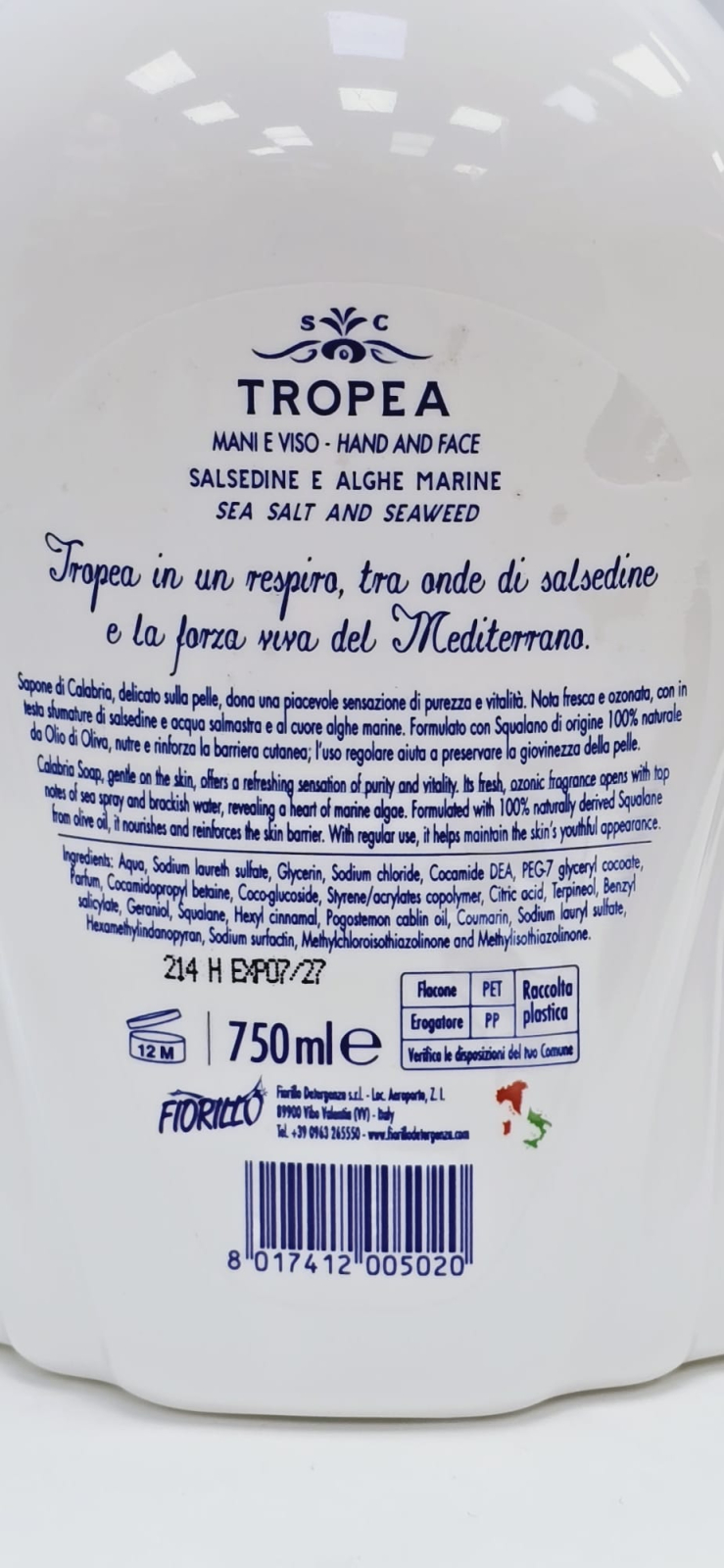 Săpun pentru mâini și față cu parfum de mare și alge marine FIORILLO ESSENZE MEDITERRANEE SAPONE DI CALABRIA TROPEA 750 ml.